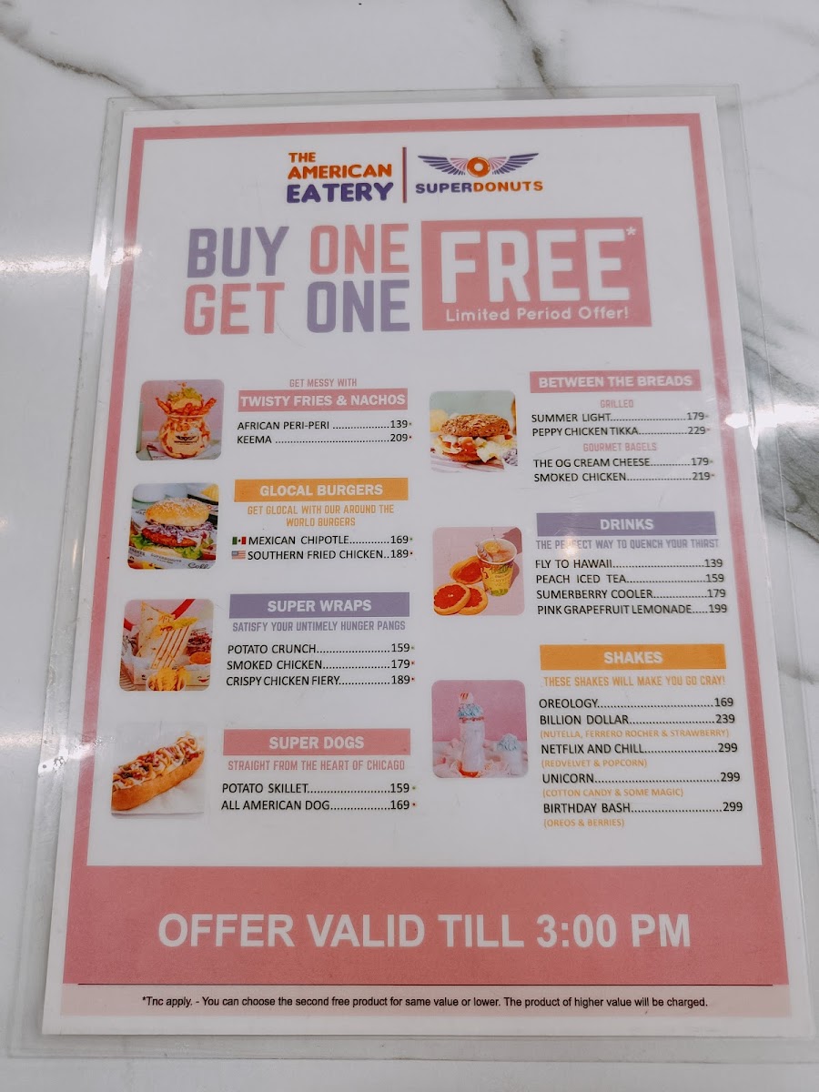 But the menu doesn't stop at donuts. Indulge in Glocal Burgers like the Mexican Chipotle or Southern Fried Chicken, complemented by Super Dogs such as the All American Dog. The drink selection features refreshing options like Peach Iced Tea and Sumerberry Cooler, perfect for a quick refreshment.
